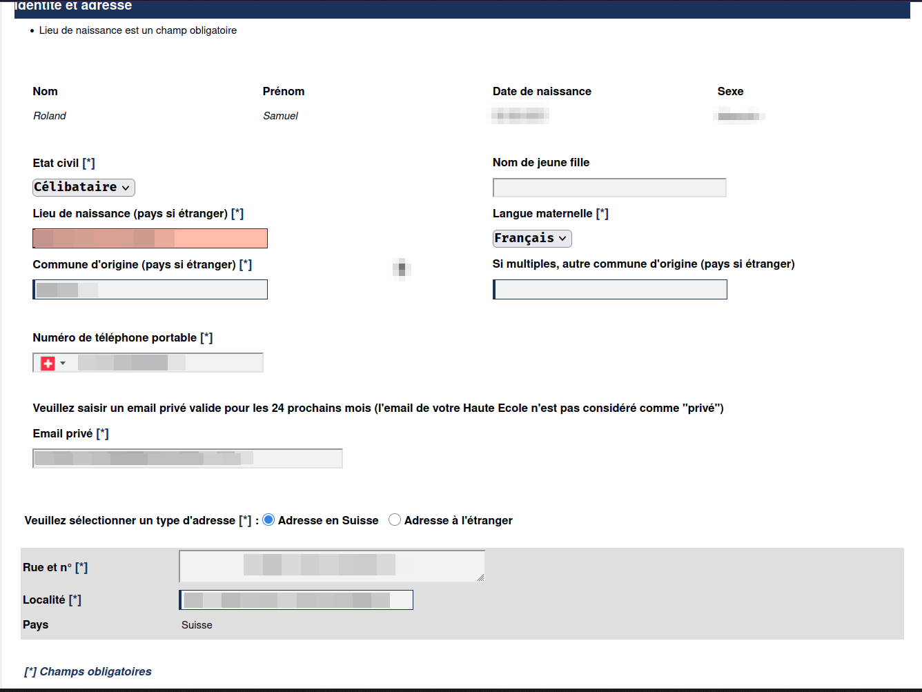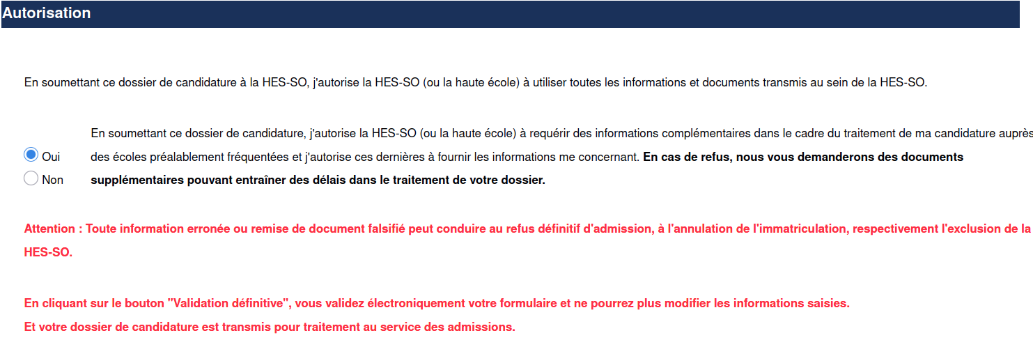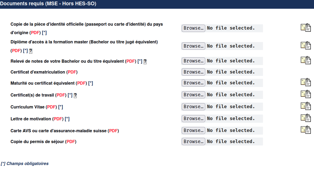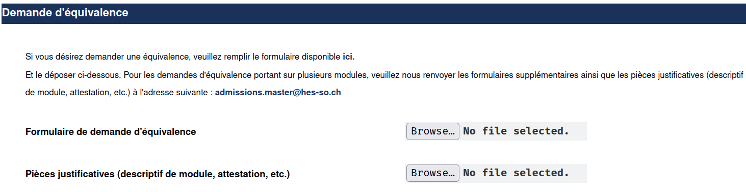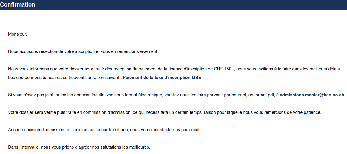 The HES-SO master inscription form